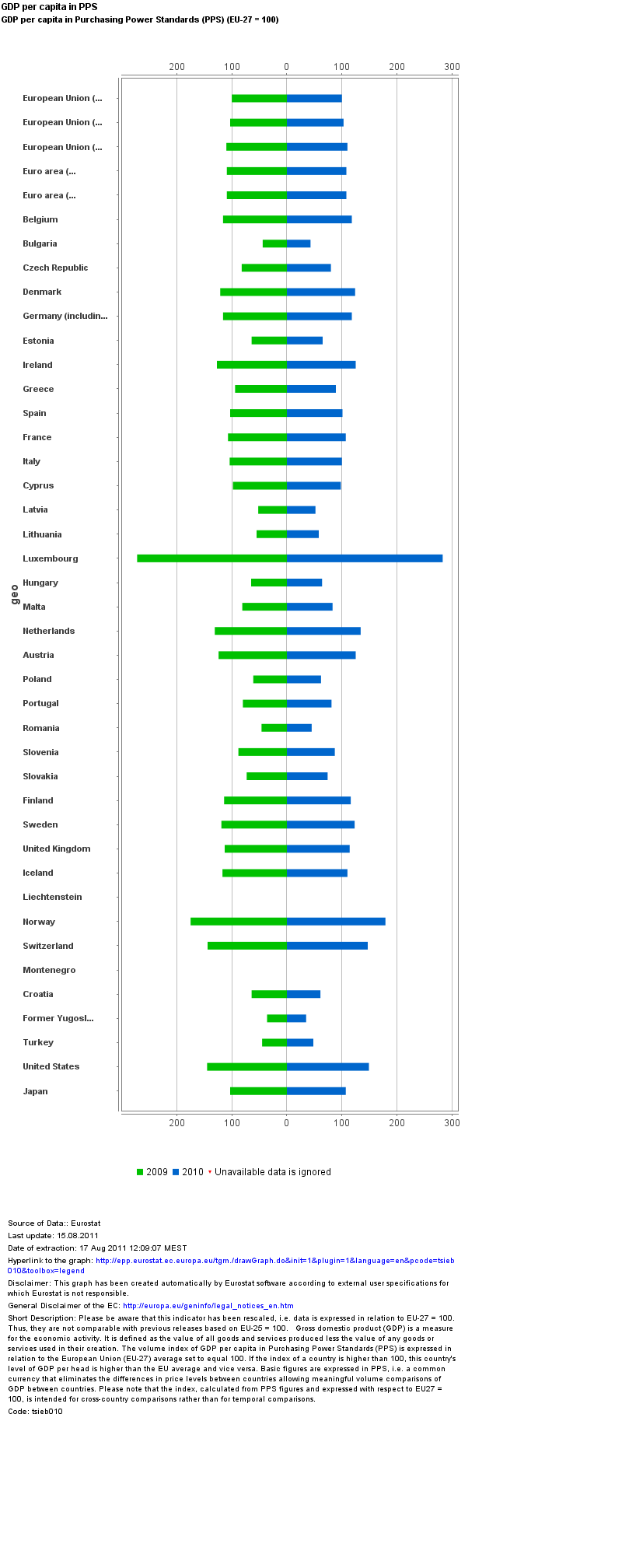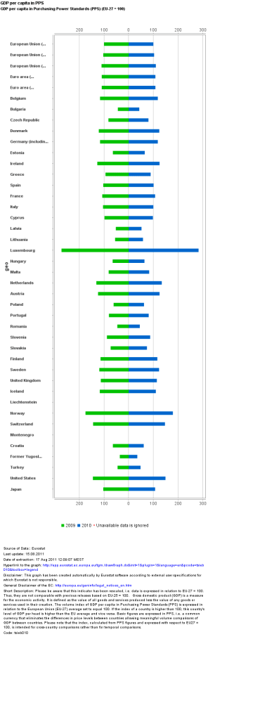 ‘Eurostat_Graph_tsieb010’ Publcat 17 august 2011 la 800 × 2016 în Bulgaria depaseste Romania ca PIB/cap de locuitor exprimat prin paritatea puterii de cumparare ‹ Înapoi