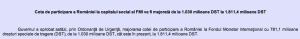 Scopul acestei majorari de cota este ridicarea resurselor la dispozitia FMI, decisa in octombrie anul trecut, pentru ca fondul sa fie mai eficient din punct de vedere al resurselor alocate. Banii astia merg si pentru salvarea Greciei, Irlandei, etc. Adica România rupta in fund de performanta economica a baietilor astia contribuie cu inca aproape un miliard de Euro la FMI pentru a ii salva pe cei cu PIB/cap de locuitor de 3 ori mai mare decat la noi.