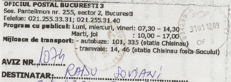 31. Adresa postei din Romania