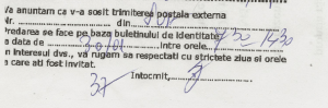 Se face 31 ianaurie. Dimineata nimic. La pranz nimic. Seara, gasesc in cutia postala o hartie. Asta: