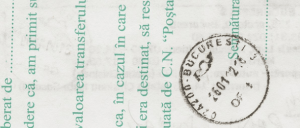 6. POȘTA Ro – Să vă spun și eu o experiență avută cu aceasta acum câțiva ani : am primit o scrisoare dintr-o țară nordică și, având în vedere că expeditorul a dorit să primesc scriosarea în cel mai scurt timp a trimis-o printr-un sistem de curierat ce nu folosea timbre ci coduri de bare, carora le erau atasate, pe langa „rubber stamp-urile” obisnuite de tipul : urgent și Par-Avion, si anumite icons (ce probabil aveau vreo logică în a departaja corespondența în acea țară sau pentru firma de curierat) . . . Ideea e că acel plic arăta intradevăr destul de oficial și . . . Merg la oficiul poștal pentru a ridica scrisoarea unde doamna de la ghișeu îmi spune și îmi și arată că am primit scrisoarea, dar că trebuie revin maine pentru că . . . (încearcă ea să-mi explice de ce) nu o pot ridica atunci și că trebuie să revin a doua zi pentru a intra în posesia ei. A doua zi surpriză ! Plicul rupt și pus într-o punguță transparentă sigilată (pe care era imprimat din loc în loc Poșta Ro . . . .) + o „foicică” unde Poșta Ro. printr-o stuctură centrală din București își cerea scuze pentru deteriorarea plicului, asigurându-mă că regretă situația creeată și că inconvenientul a survenit datorită transbordării . . .