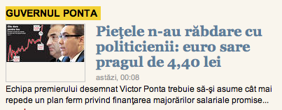 Cu toate astea, care arata ca leul s-a depreciat putin si justificat de fundamente pana la 4,4 lei, colegii de la ziarul financiar o tin ca surda pe morminte, dovedind ca nu isi citesc propriul ziar. Priviti titlul de mai jos: