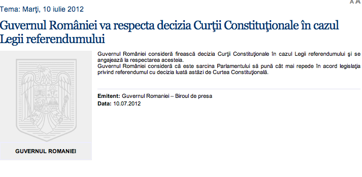 Adica domnul Ponta spunea că guvernul Romaniei va respecta decizia Curtii Constitutionale in cazul Legii referendumului dar face tot cum vrea el a referendumul din 29 iulie.