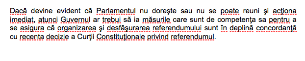 Aparentele? Ii ruga pe presedintele senatului si pe cel al camerei deputatilor sa convoace o sesiune extraordinara, care, nu-i asa, sa modifice legea referendumului.
