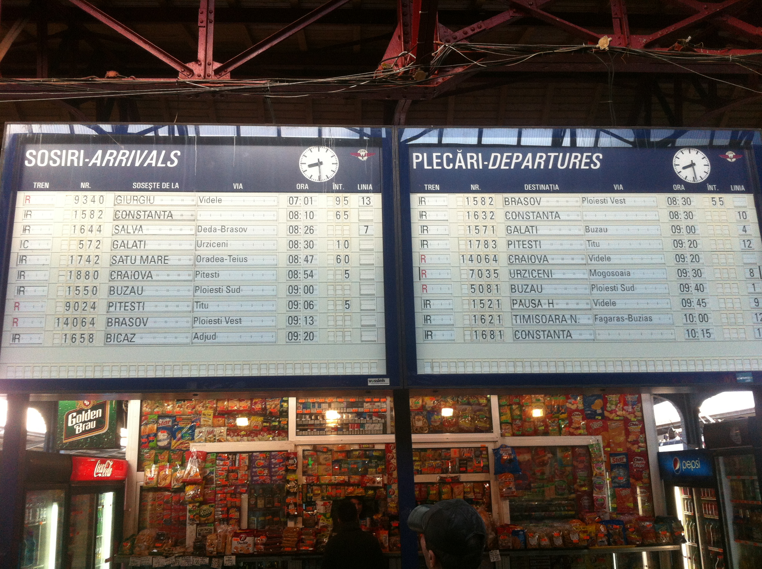 3. Trenul care mă interesează pe mine vine de la Constanța. Ar fi trebuit să ajungă la 8.10 în Gara de Nord și să plece spre Brașov la 8.30. Este ora 8.30 fix – întârzierea anunțată crește la 65 de minute. Înțeleg de la călători că e cea mai proastă variantă să pleci spre munte cu trenul care vine din Constanța – cică din cauza furturilor de pe calea ferată (cabluri electrice furate de piranzi și pirande), trenul ăsta întârzie mereu. Și atunci de ce naiba nu este modificat mersul trenurilor? De ce nu se pune ora reală de sosire și de plecare? Modelând efectele furturilor (întârziere), înseamnă că modelezi furtul în sine. Chiar nu sunt cei de la CFR – diverși Necolaiciuci interesați de furturi? De ce le încurajează?