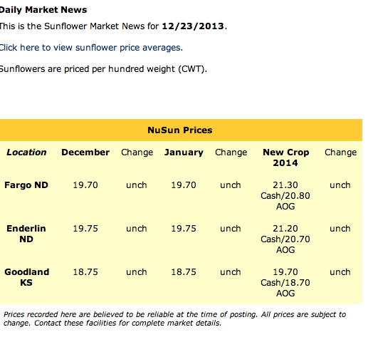 Si acum niste calcule: pretul pentru semintele de floarea soarelui este denominat pentru unitatea de masura CWT (o traducere aproxmativa ar insemna ”unitate de conversie chintal”). Pretul pentru un CWT de seminte de floarea soarelui este de 19,7 dolari.