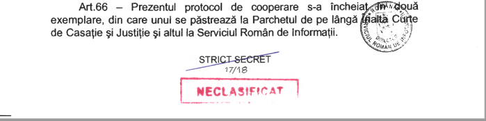 - Dacă există un alt protocol (încheiat ulterior deciziei Curții Constituționale și ca o consecință a acestuia), SĂ FIE DESECRETIZAT DE URGENȚĂ, pentru a elimina, definitiv ,,câmpul tactic” atât din instanțele civile dar și din cele penale.