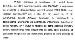 - Sub protocol secret cu SRI, știindu-se că e posibil să dai dovadă de naivitate, să te înșeli sau nu ai informația corectă, doamna Tarcea ajunge să o excludă din magistratură pe doamna Coțofană pentru ,,graba” cu care a sesizat Parchetul pentru verificarea indiciilor de infracțiuni de care a luat cunoștință în exercitarea funcției de judecător.