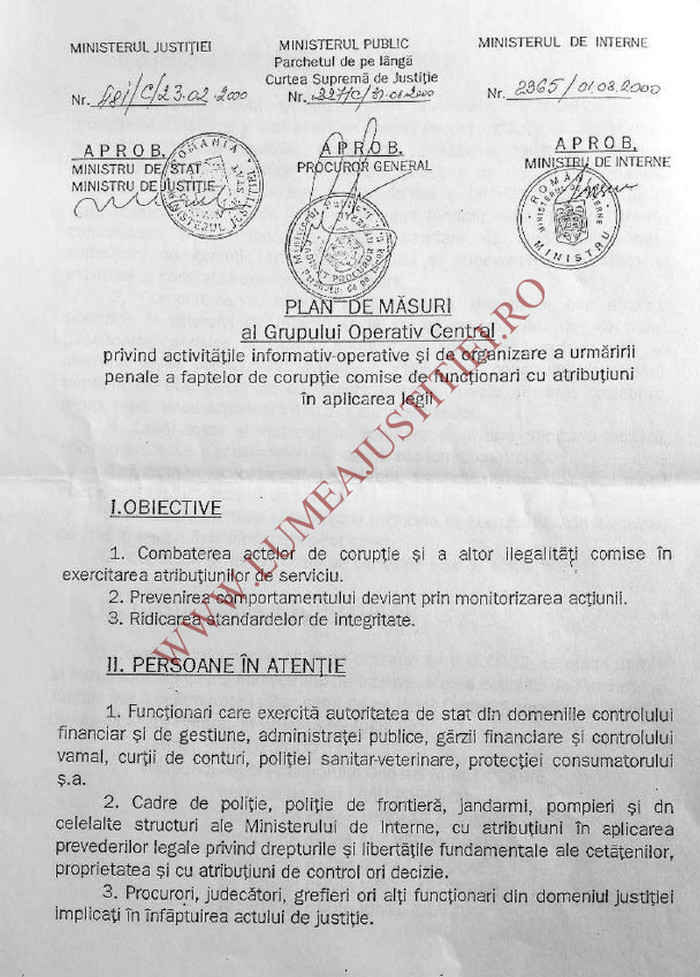Așa cum vedeți în subsolul paginii de mai sus, planul de acțiune privind urmărirea operativ-informativă includea, la punctul 3, ,,procurori, judecători, grefieri ori alți funcționari din domeniul justiției implicați în înfăptuirea actului de justiție”.