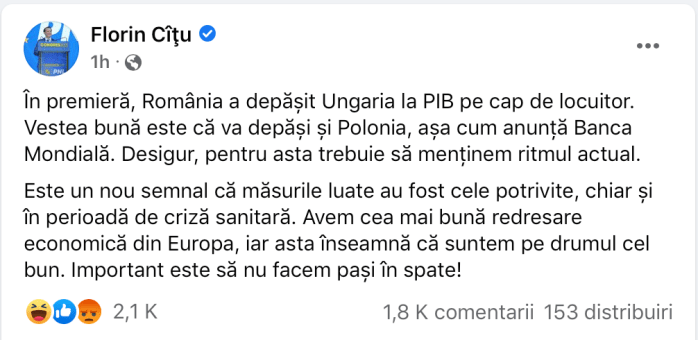 Later edit: Vad ca Florin si-a luat fakenews-ul de la baietasul care a mai dat o duma: ,,In 2020 Romania a depasit Slovacia ca PIB/cap de locuitor”. Aoleuuuu!