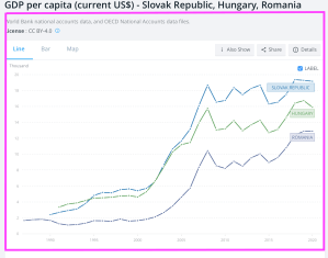 Compartiv, PIB/capita în Slovacia, Ungaria și România, aici: