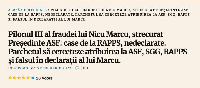 Am arătat în Ziarul Bursa că Președintele ASF a făcut și matrapazlâcuri cu case RAPPS. Am arătat și investigat cum Nicu a obținut 2 (două) case de la RAPPS, fără ca legea să îi permită, case despre care ,,a uitat” să le treacă în declarația de avere (care trebuie investigată de ANI, sub sancțiunea falsului în declarații). Dar nevasta Președintelui ANI a fost angajată la asefeu….