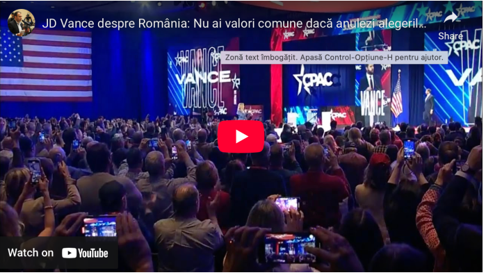 JD Vance despre alegerile din România la CPAC (Conferința Acțiunii Politice A Conservatorilor).