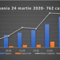 762 de cazuri confirmate pozitiv în România azi, 24 martie 2020, ora 13.00. Rata de creștere zilnică scade nesemnificativ (32,29%) dar si numarul de teste noi.